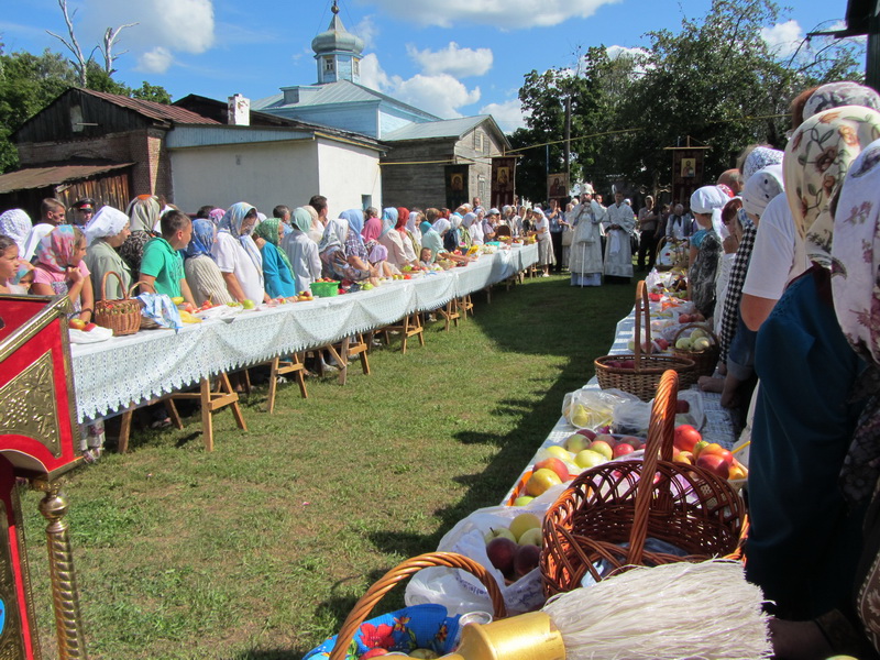 Возвратившись к храму, Преосвященный епископ на проповеди поздравил всех участников богослужения с двунадесятым праздником Преображения Господня и совершил освящение плодов нового урожая, в изобилии принесенных прихожанами. (источник новости сайт Касимовской Епархии)