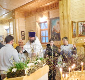 Вечером 11 апреля, в канун праздника Входа Господня в Иерусалим, благочинный Спас-Клепиковского благочиния протоиерей Александр Мельник совершил Всенощное бдение в Никольском храме г.Спас-Клепики. На утрене, после прочтения Евангелия, по 50-м псалме, настоятель совершил чин освящения ваий.