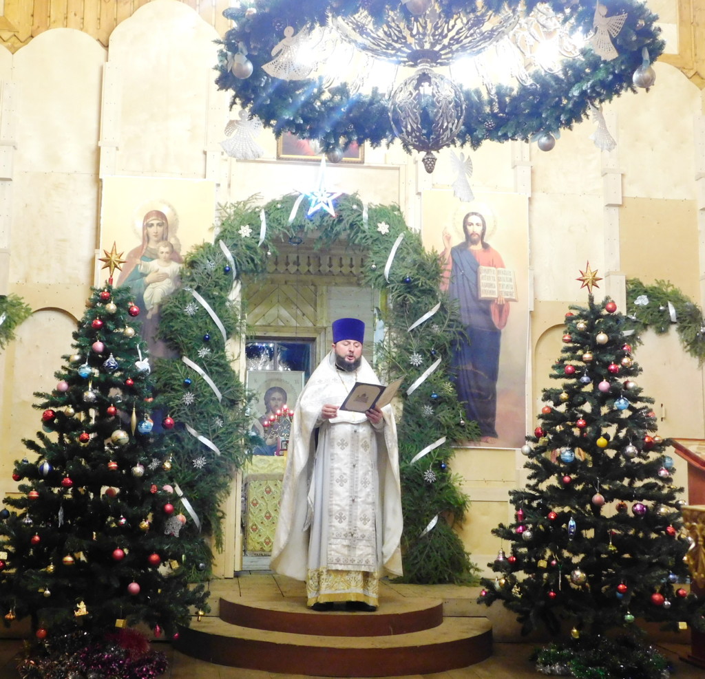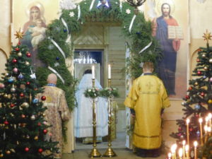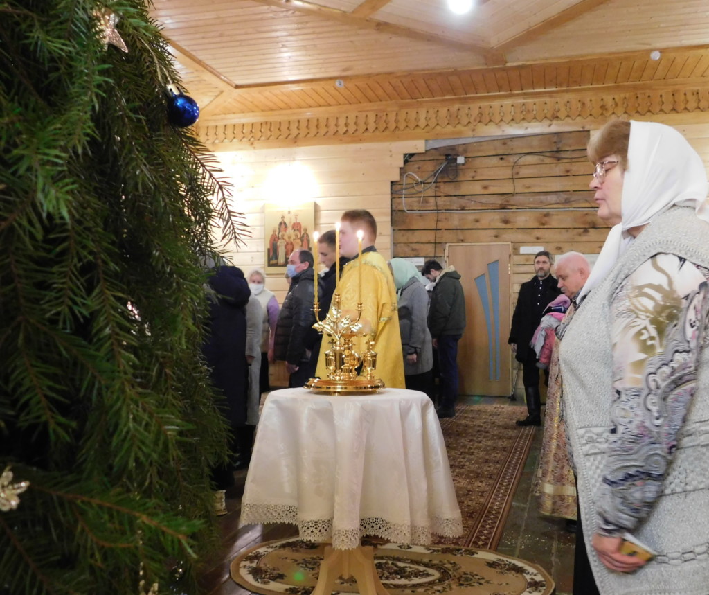 В ночь с 6 на 7 января 2021 года, в праздник Рождества Господа Бога и Спаса нашего Иисуса Христа, в Никольском храме г.Спас-Клепики протоиерей Александр Мельник совершил Всенощное бдение и Божественную литургию свт.Иоанна Златоуста. По окончании богослужения настоятель огласил Рождественское послание Святейшего Патриарха Московского и всея Руси Кирилла, и поздравил прихожан с наступившим праздником.
