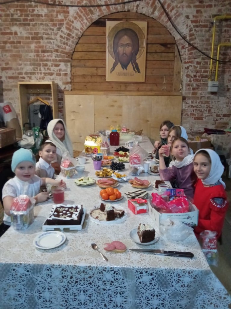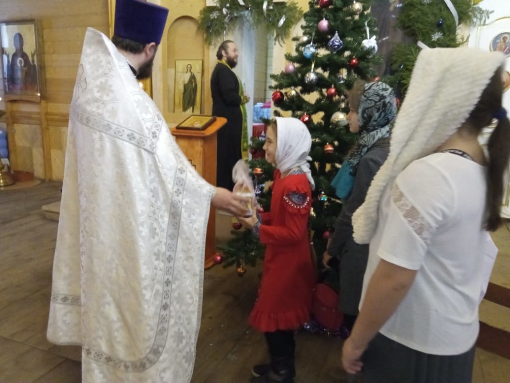 Настоятель порадовал детей сладкими подарками.
