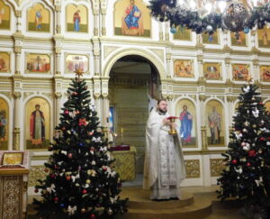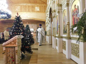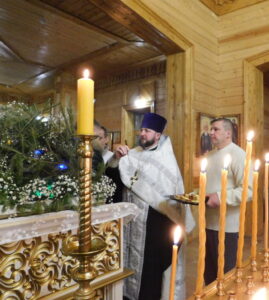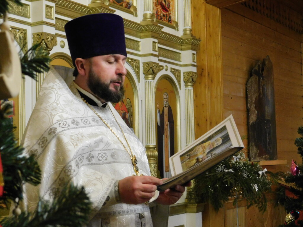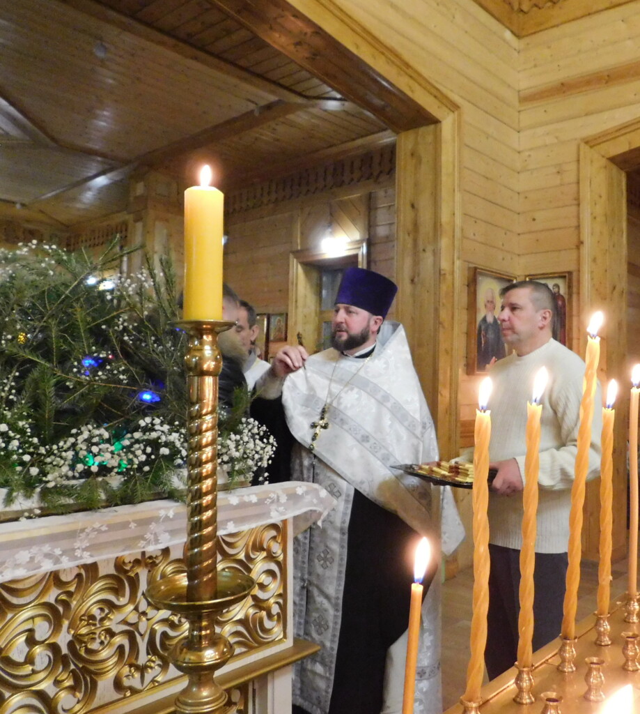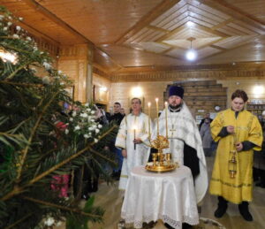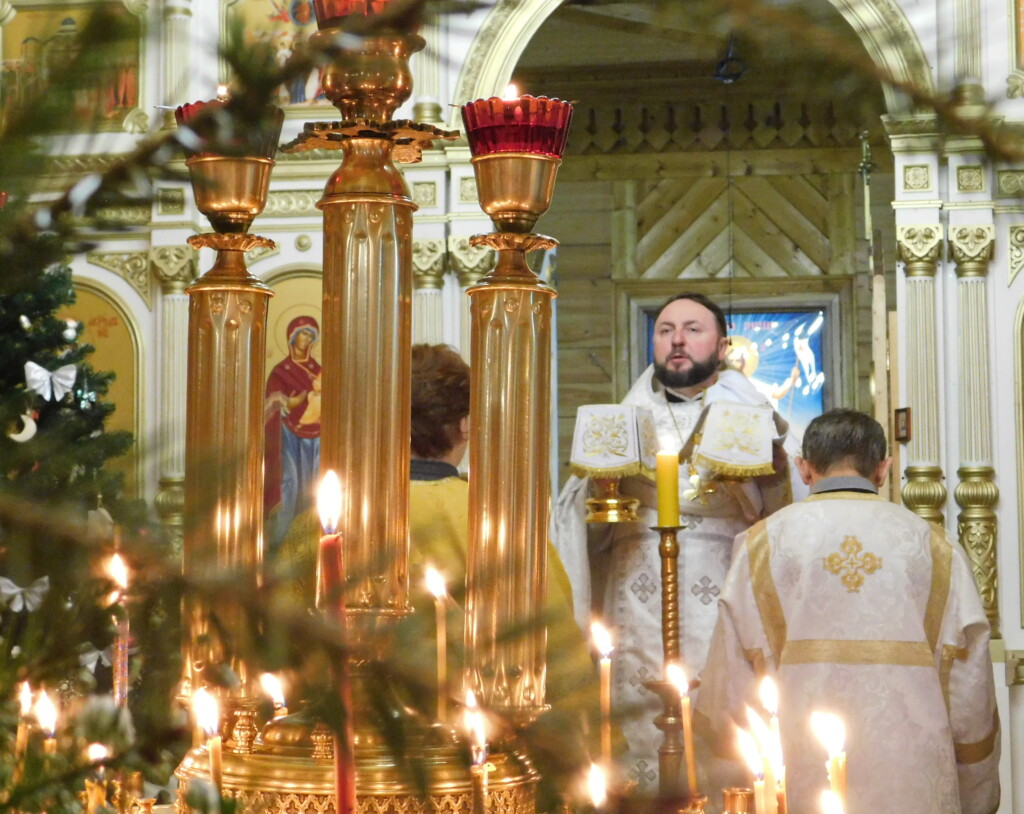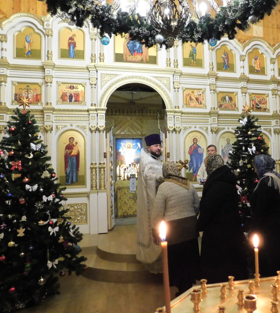 В ночь с 6 на 7 января 2024 года, в праздник Рождества Господа Бога и Спаса нашего Иисуса Христа, в Никольском храме г.Спас-Клепики протоиерей Александр Мельник совершил Всенощное бдение и Божественную литургию свт.Василия Великого. По окончании богослужения настоятель огласил Рождественское послание Святейшего Патриарха Московского и всея Руси Кирилла, и поздравил прихожан и гостей города с наступившим Праздником.