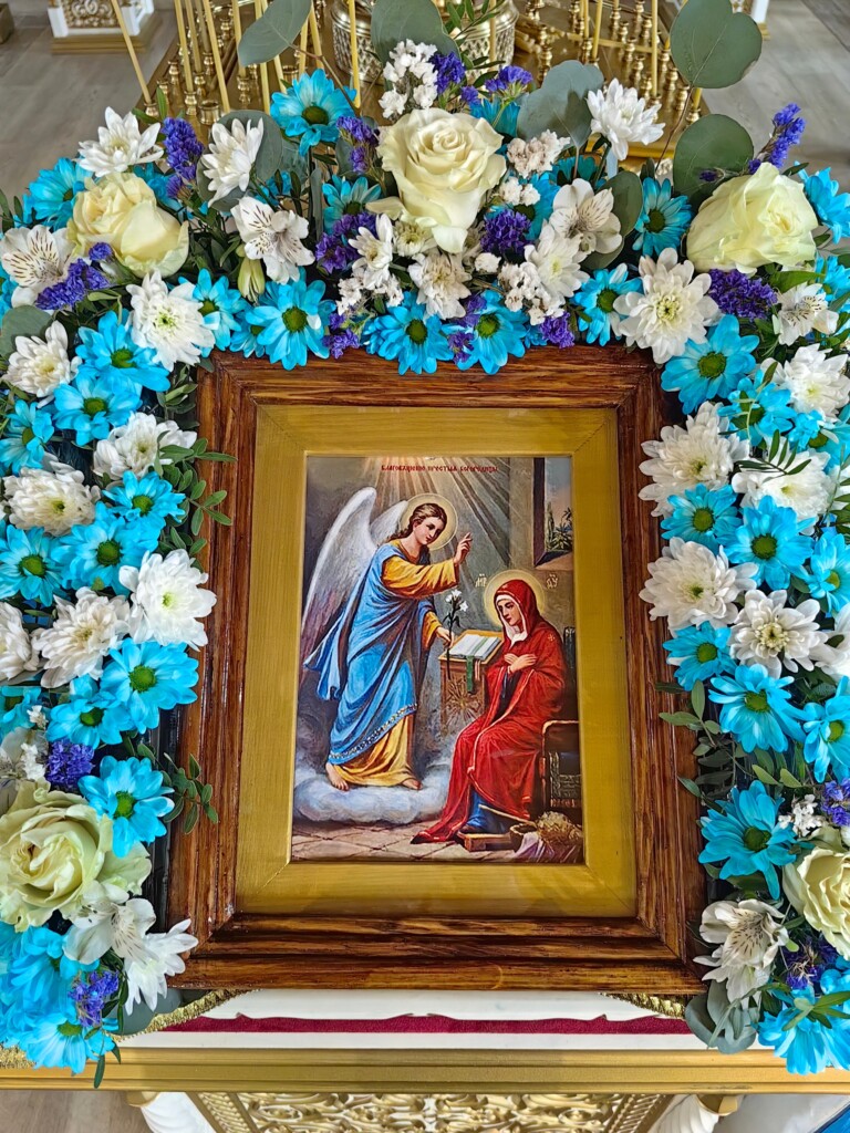 «В сей день спасения нашего начало и предвечного таинства явление: Сын Божий Сыном Девы становится и Гавриил о благодати благовествует. Потому и мы с ним Богородице возгласим: «Радуйся, Благодатная, Господь с Тобою!»
