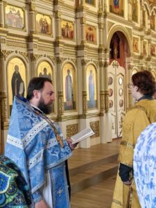 7 апреля Неделя 3-я Великого поста, Крестопоклонная (на утрене после великого славословия – вынос Креста и поклонение ему), Праздник Благовещения Пресвятой Богородицы, Божественную Литургию в Никольском храме г.Спас-Клепики совершил протоиерей Александр Мельник. По заамвонной молитве настоятель обратился к прихожанам с проповедью.