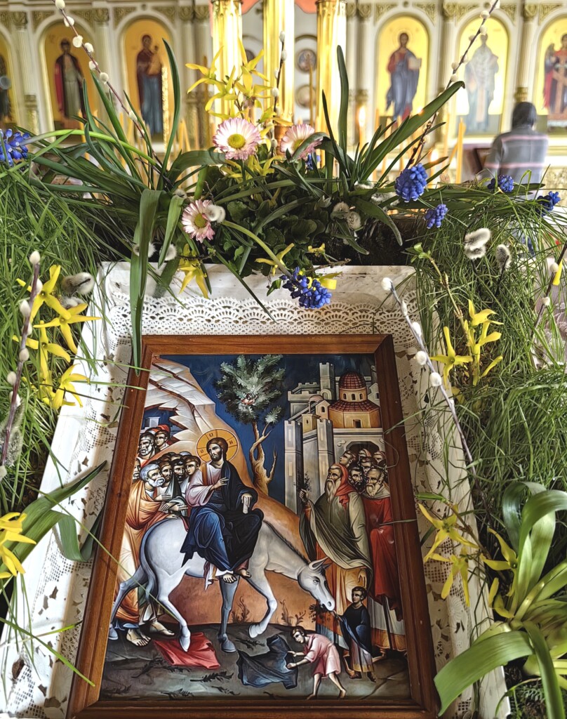 «Господи Боже наш, Восседающий на херувимах! Ты воздвиг Силу — Своего Сына, Господа нашего Иисуса Христа, чтобы Он Своим крестом, погребением и воскресением спас мир. И когда Он, явившись для этого, шел в Иерусалим на добровольные страдания, то народ, пребывавший во тьме и смертном мраке, взявши пальмовые и других деревьев ветви, как символы жизни, возвещал ими о воскресении. О, Владыка, Ты Сам сохрани и сбереги и нас, подобно им носящих в руках в этот предпраздничный день пальмовые и других деревьев ветви; и, сохраняя нас, удостой, чтобы мы с пением духовных песней и песнопений, как и те народы и дети, воспевающие Тебе «Осанна», встретили Тридневное Животворящее Воскресение во Христе Иисусе, Господе нашем, с Которым благословен Ты вместе с Пресвятым, Всеблагим и Животворящим Твоим Духом, ныне и всегда и во веки веков. Аминь».